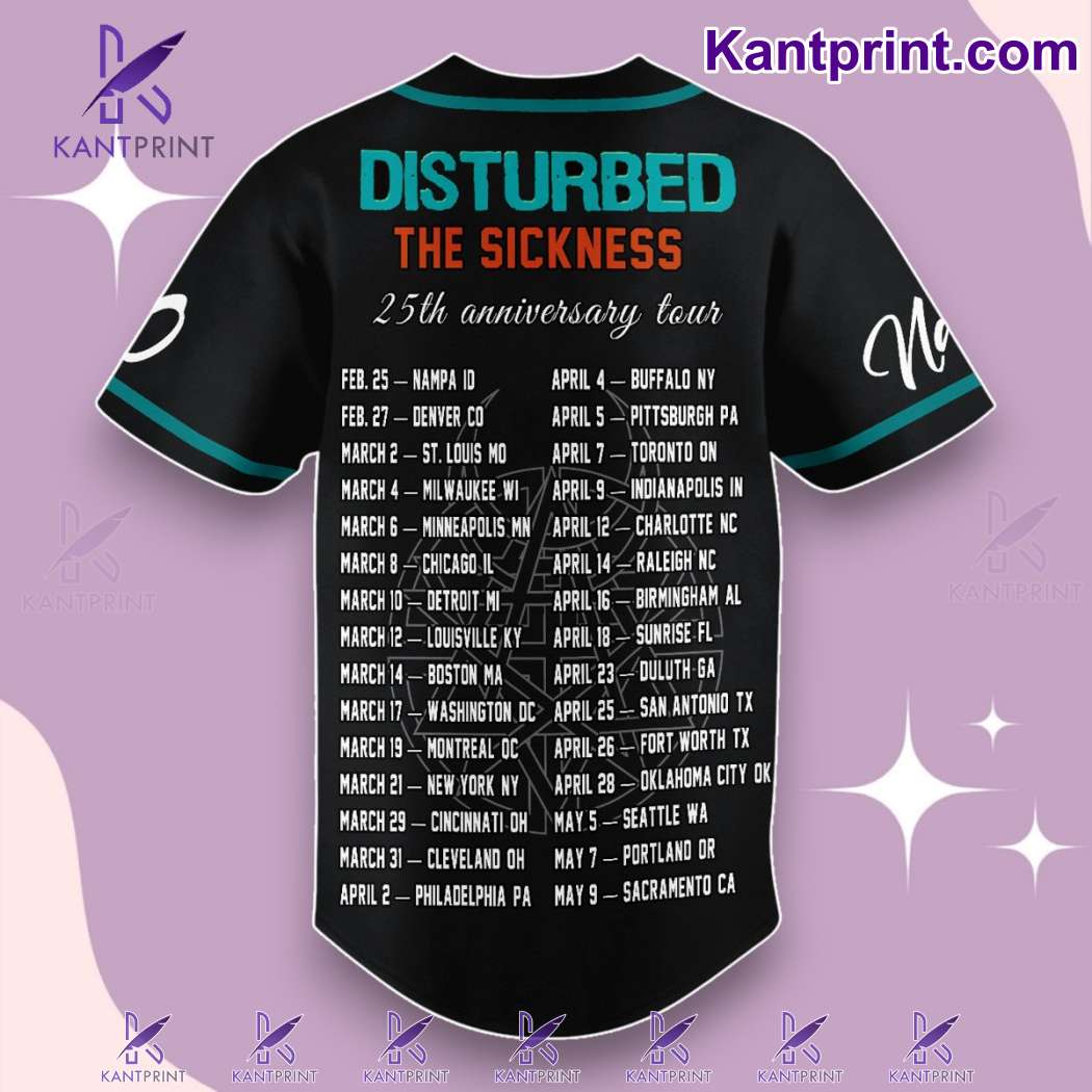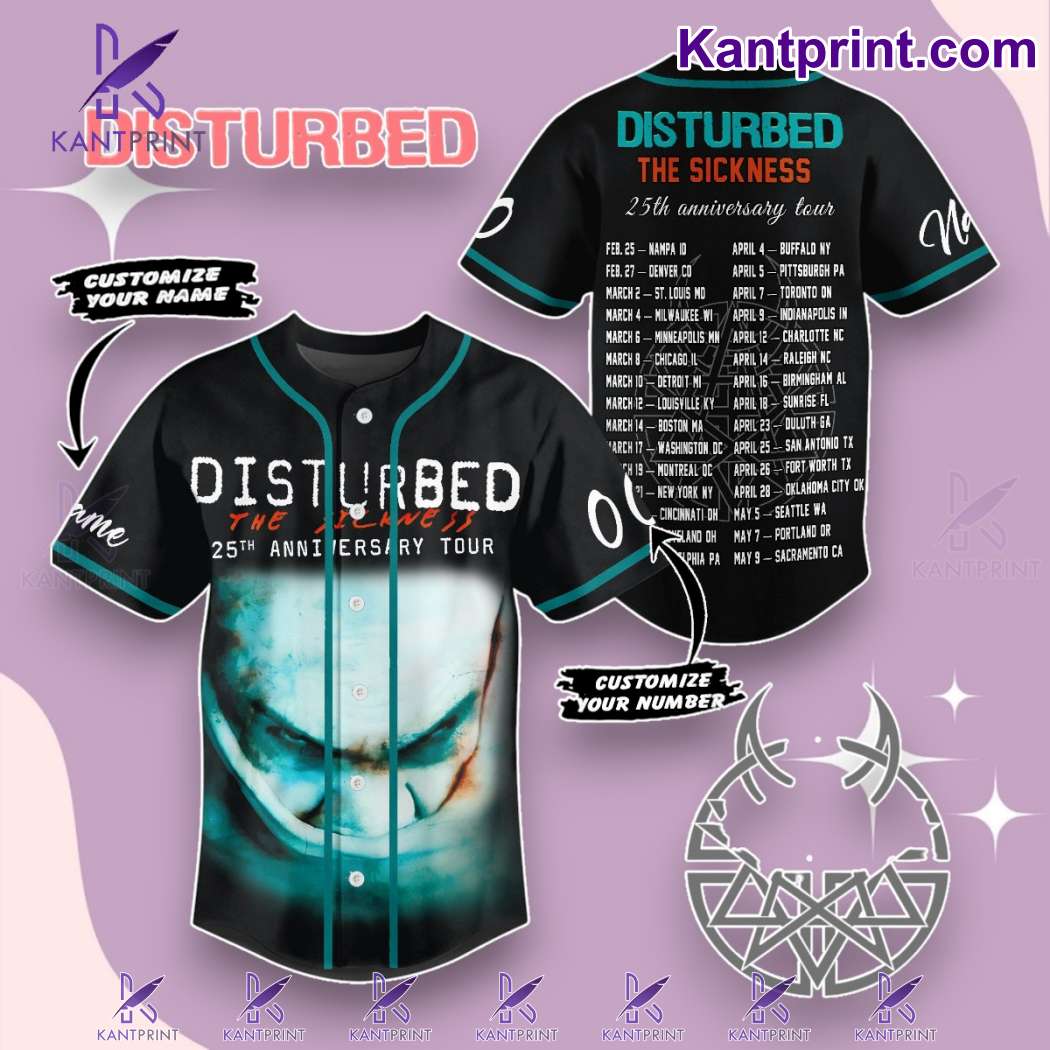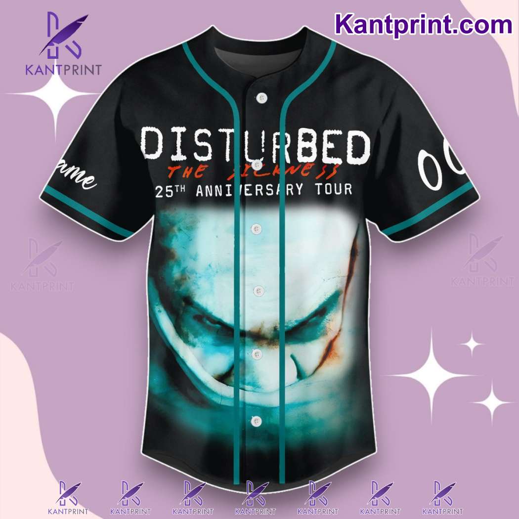Keywords: Disturbed 25th anniversary jersey, The Sickness baseball jersey, personalized band merch, Disturbed tour 2025 jersey, rock music memorabilia, Disturbed fan apparel
