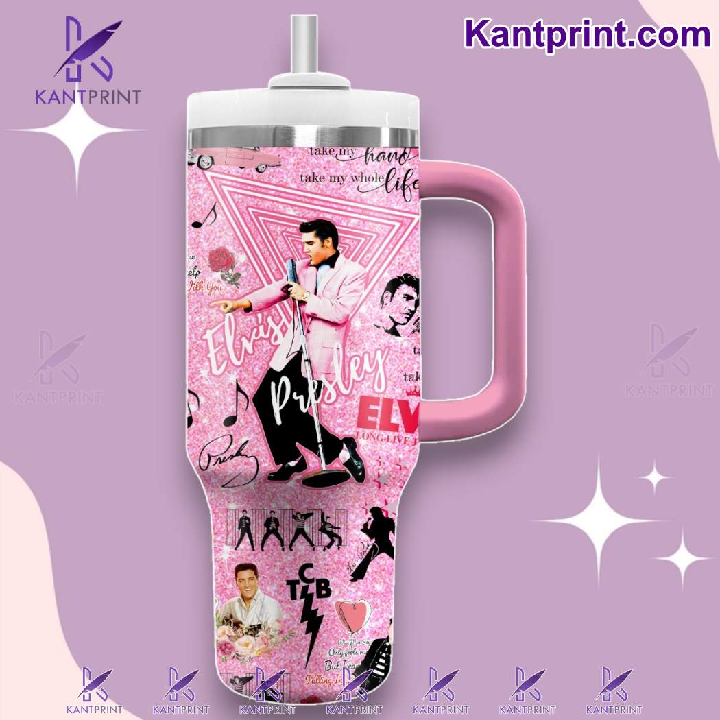 Keywords: Elvis Presley tumbler, Graceland memorabilia, 40oz tumbler with handle, Elvis 90th birthday, collectible drinkware