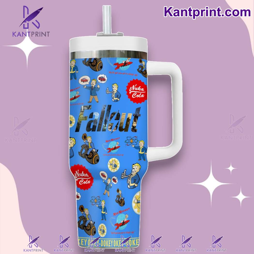 Keywords: Fallout tumbler, gaming merchandise, 40oz tumbler with handle, Dokey Okey drinkware, Fallout fan gear