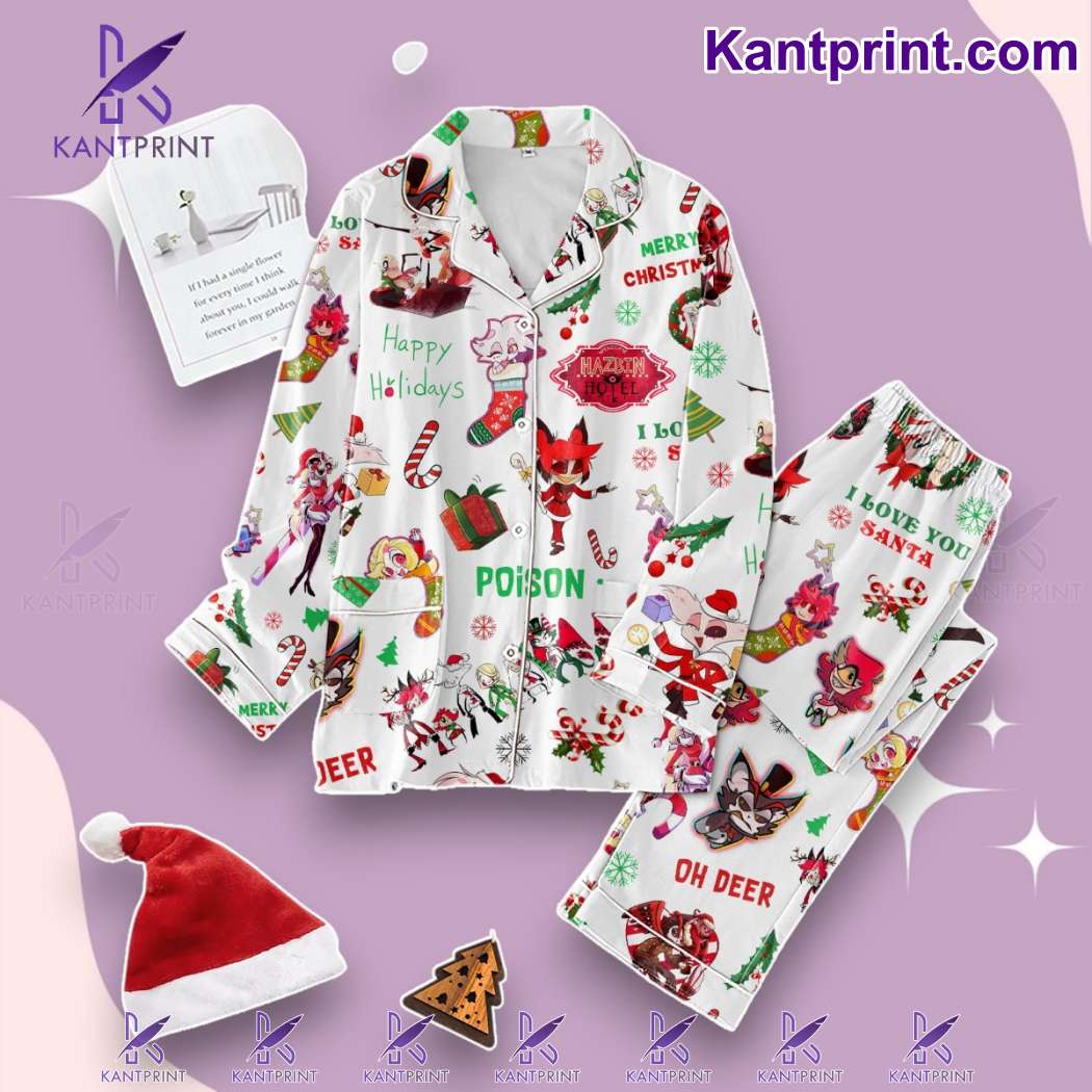 Keywords: Hazbin Hotel holiday sleepwear, festive pajama set, fan-inspired apparel