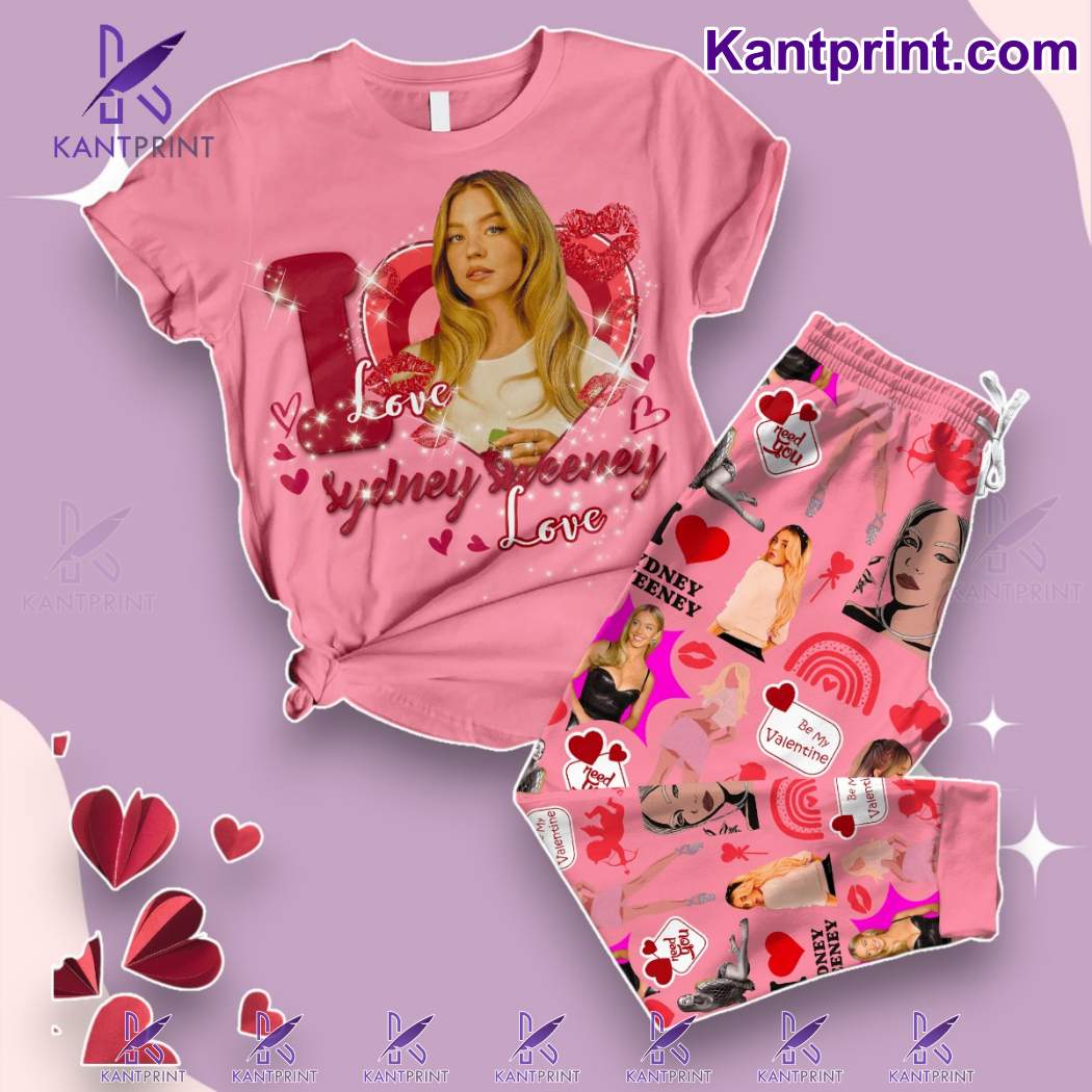 I Love Sydney Sweeney Valentine Pajamas Set SxfKLoU
