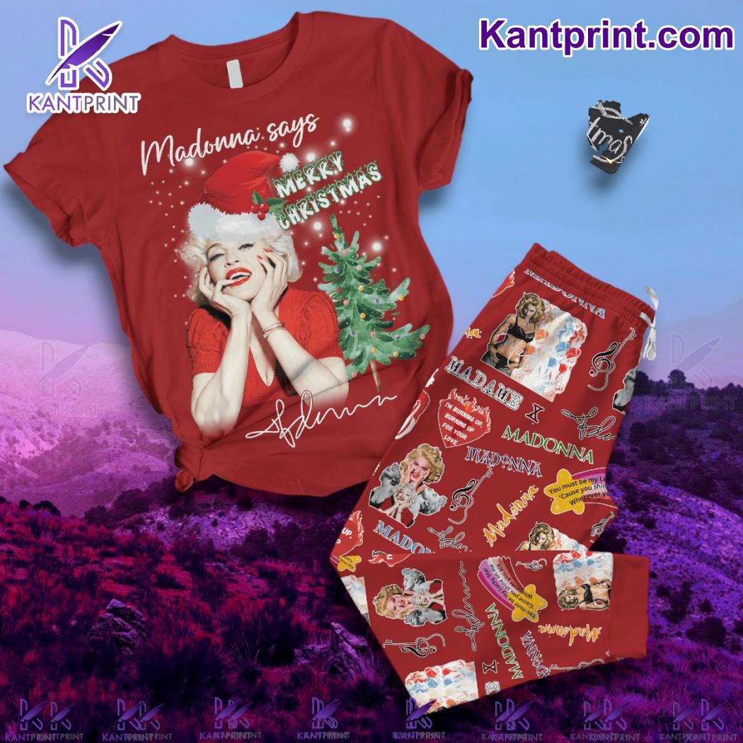 Madonna Says Merry Christmas Signature Pajamas Set Description