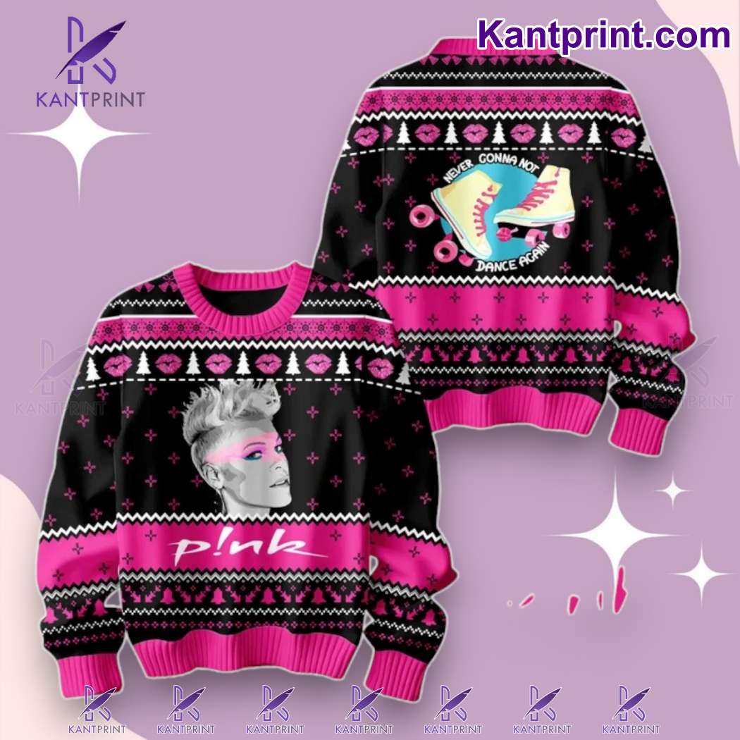 Keywords: Pink Christmas sweater, dance-inspired holiday apparel, music-themed ugly sweater, festive Pink merch