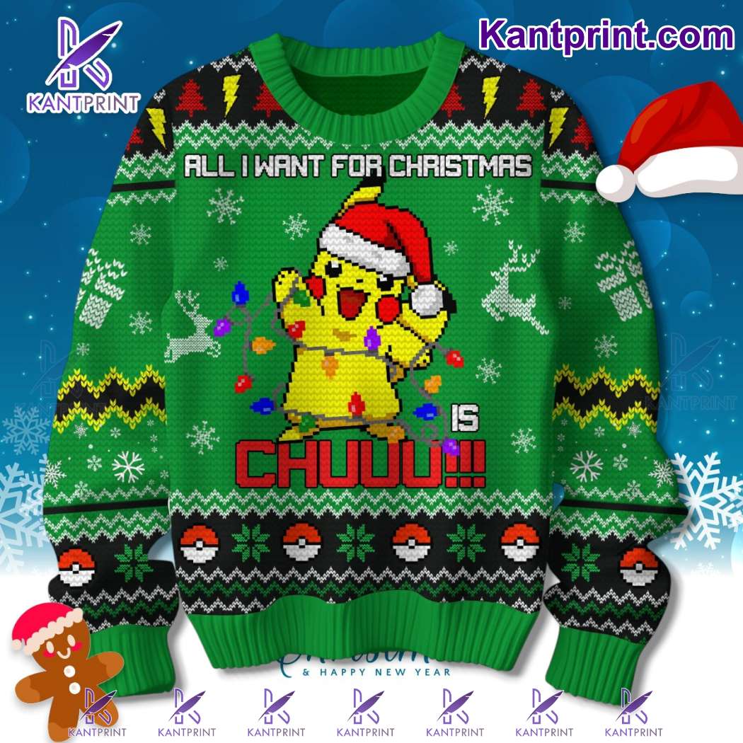 Pokemon Pikachu All I Want For Christmas Is Chuuu Sweater NOTE: