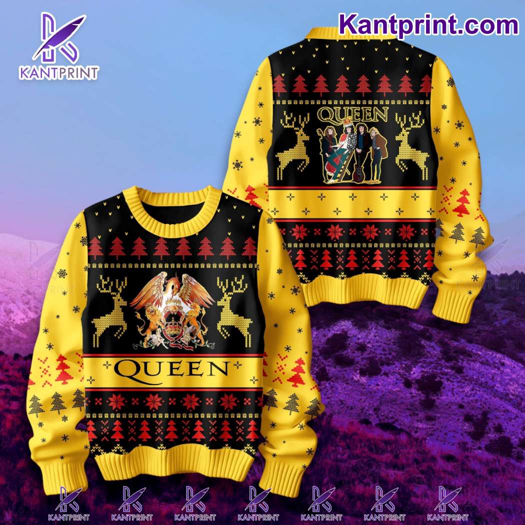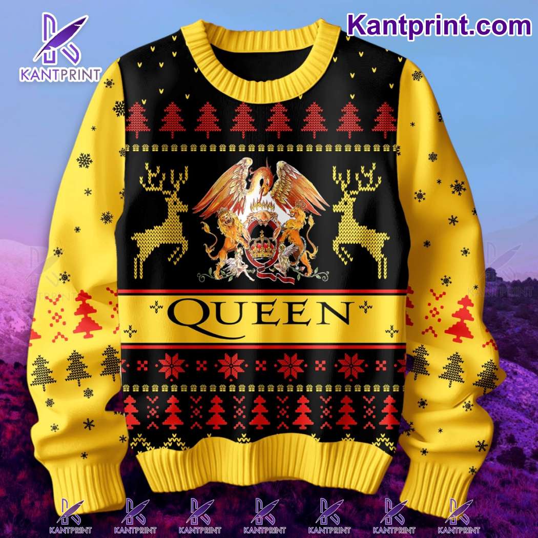 Keywords: Queen holiday sweater, rock band Christmas apparel, festive Queen merchandise