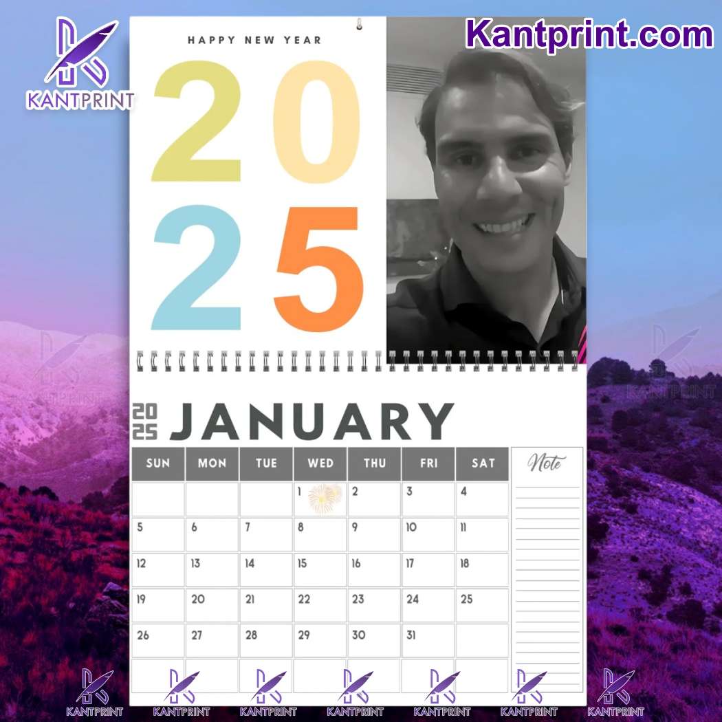 Rafael Nadal Printed Design 2025 Wall Hanging Calendar NOTE: