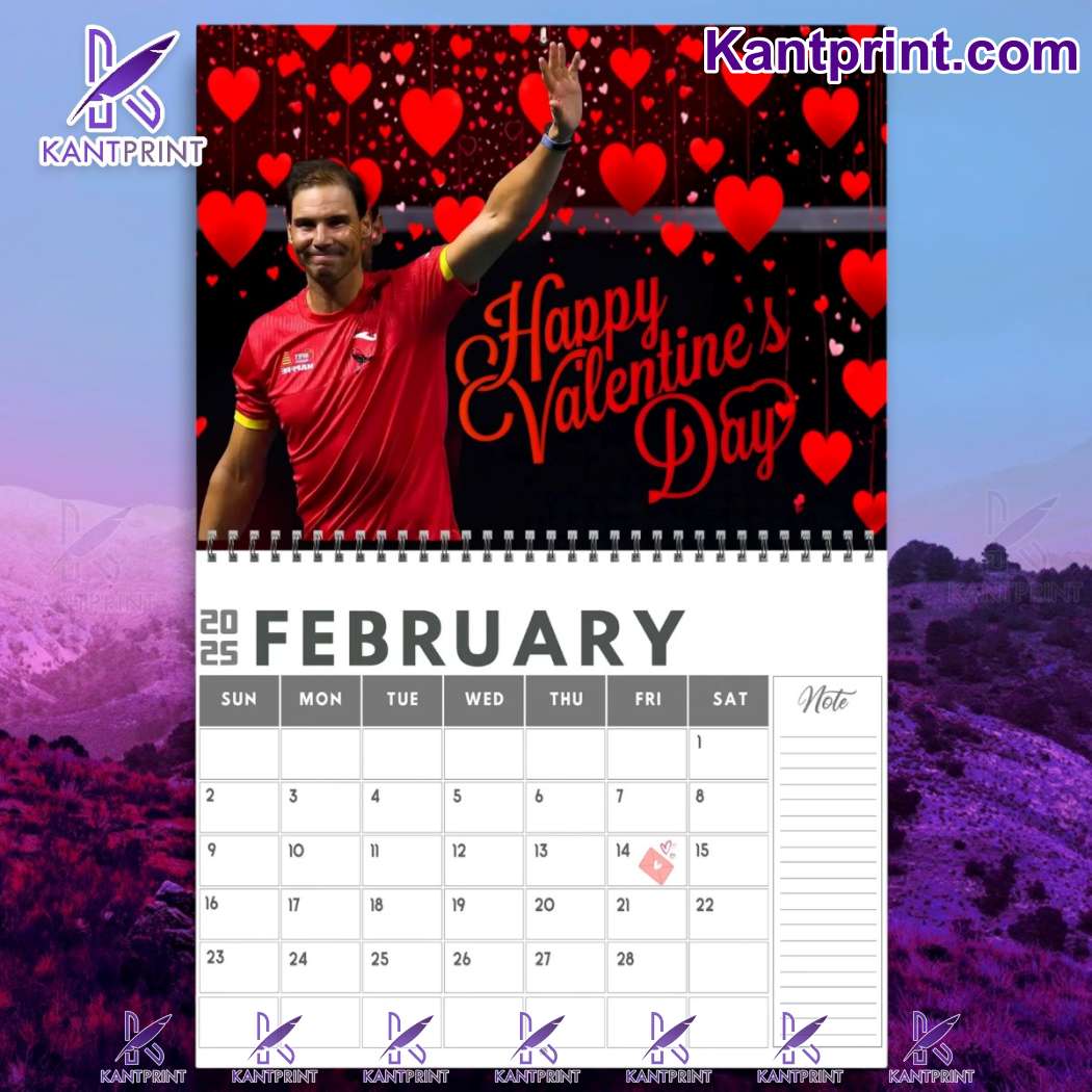Rafael Nadal Printed Design 2025 Wall Hanging Calendar Description