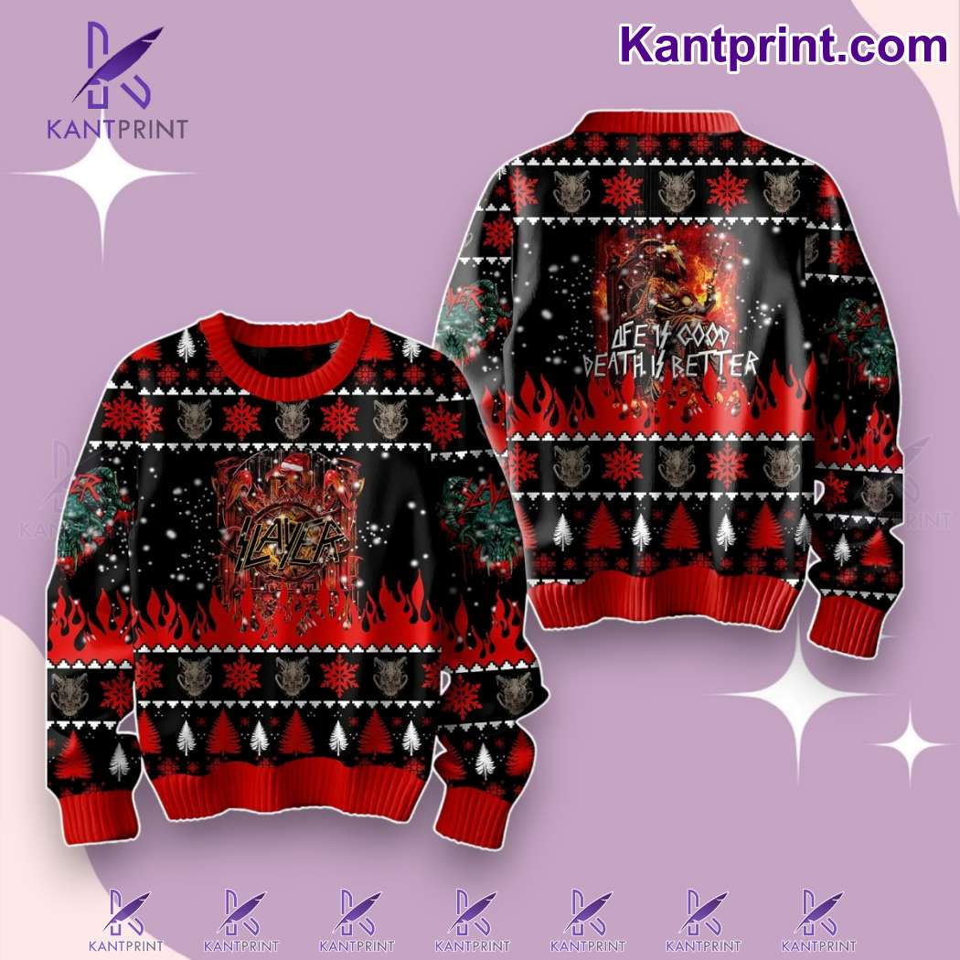 Slayer Life Is Good Death Is Better Ugly Christmas Sweater NOTE: