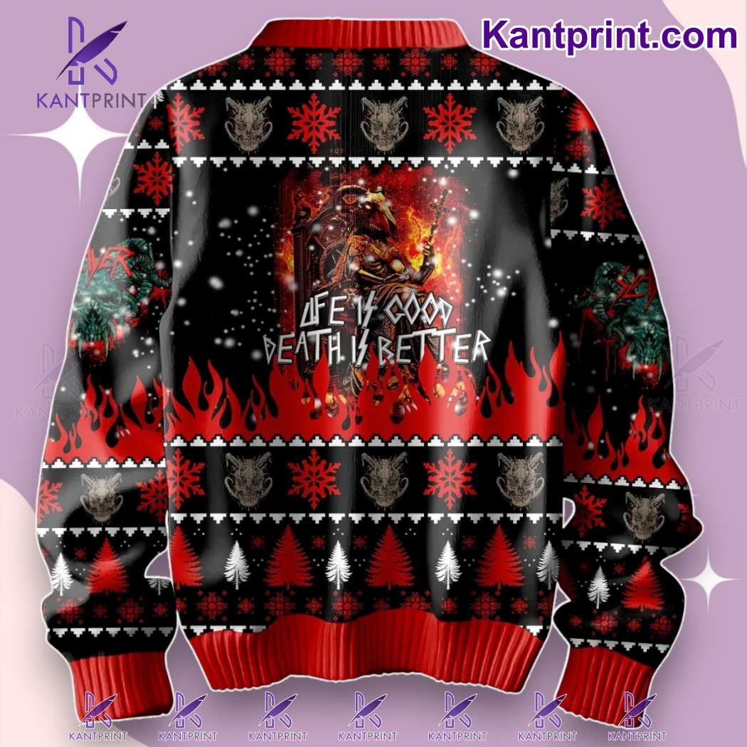 Slayer Life Is Good Death Is Better Ugly Christmas Sweater Description