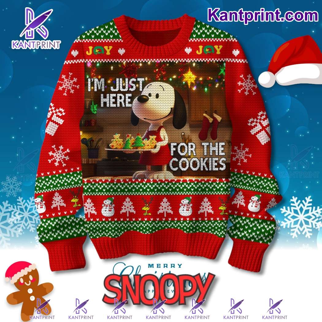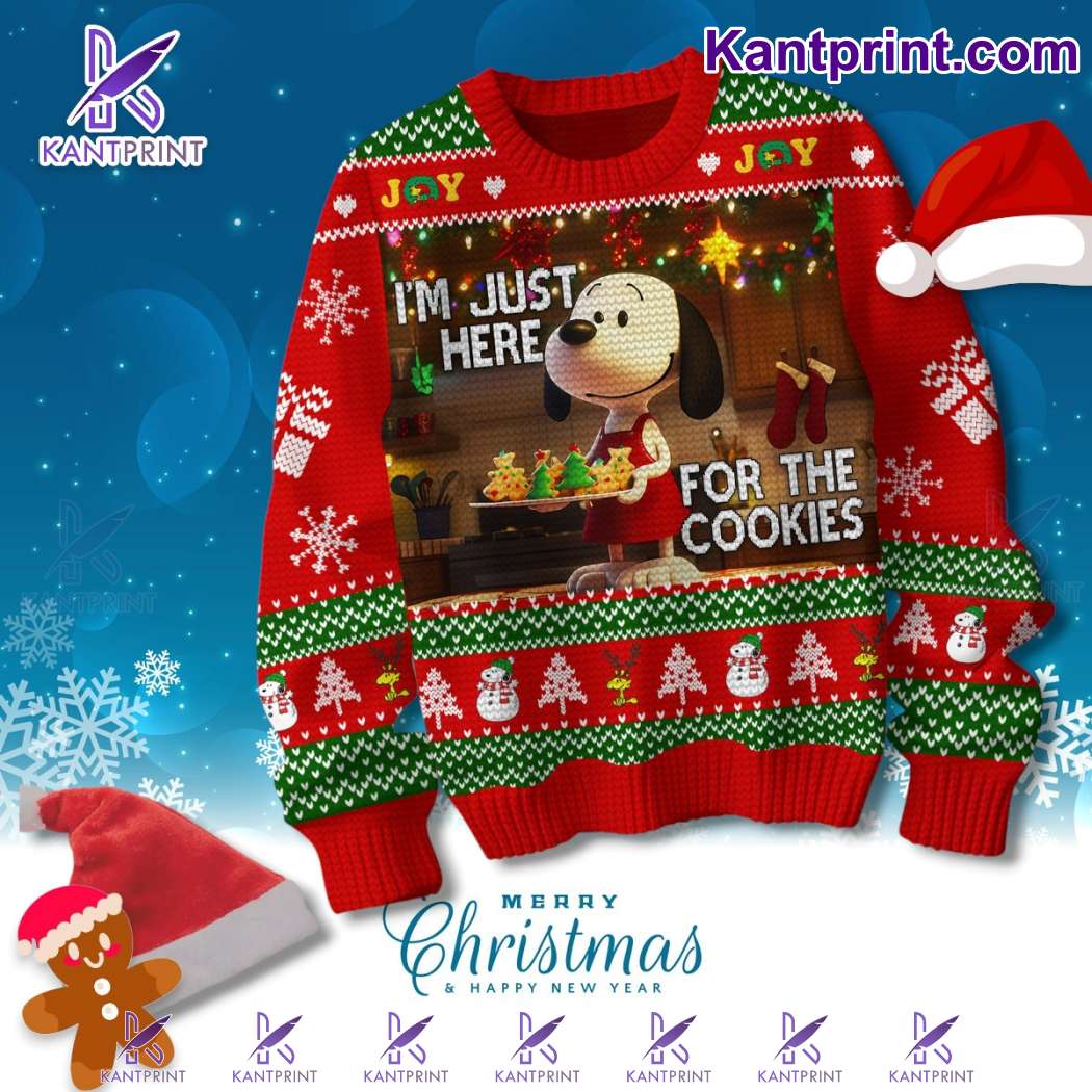 Snoopy I’m Just Here For The Cookies Ugly Christmas Sweater NOTE:
