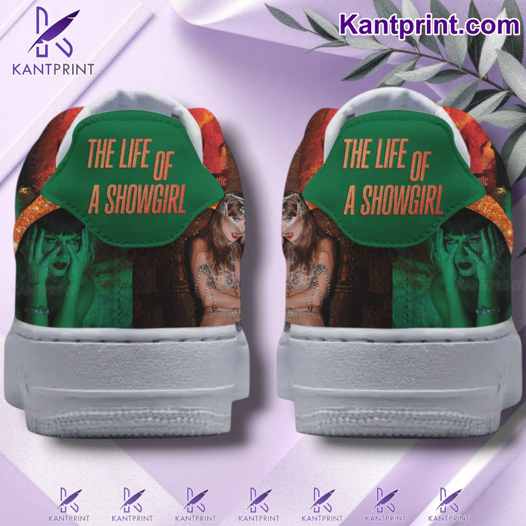 Inspired by Taylor’s captivating stage presence and the glitz and glamour of her performances, these Air Force 1s are a visual spectacle. The design captures the essence of “The Life Of A Showgirl,” embodying the energy, passion, and storytelling that define Taylor’s music. Whether you’re heading to a concert, hanging out with friends, or simply want to express your love for Taylor Swift, these shoes will make a statement.